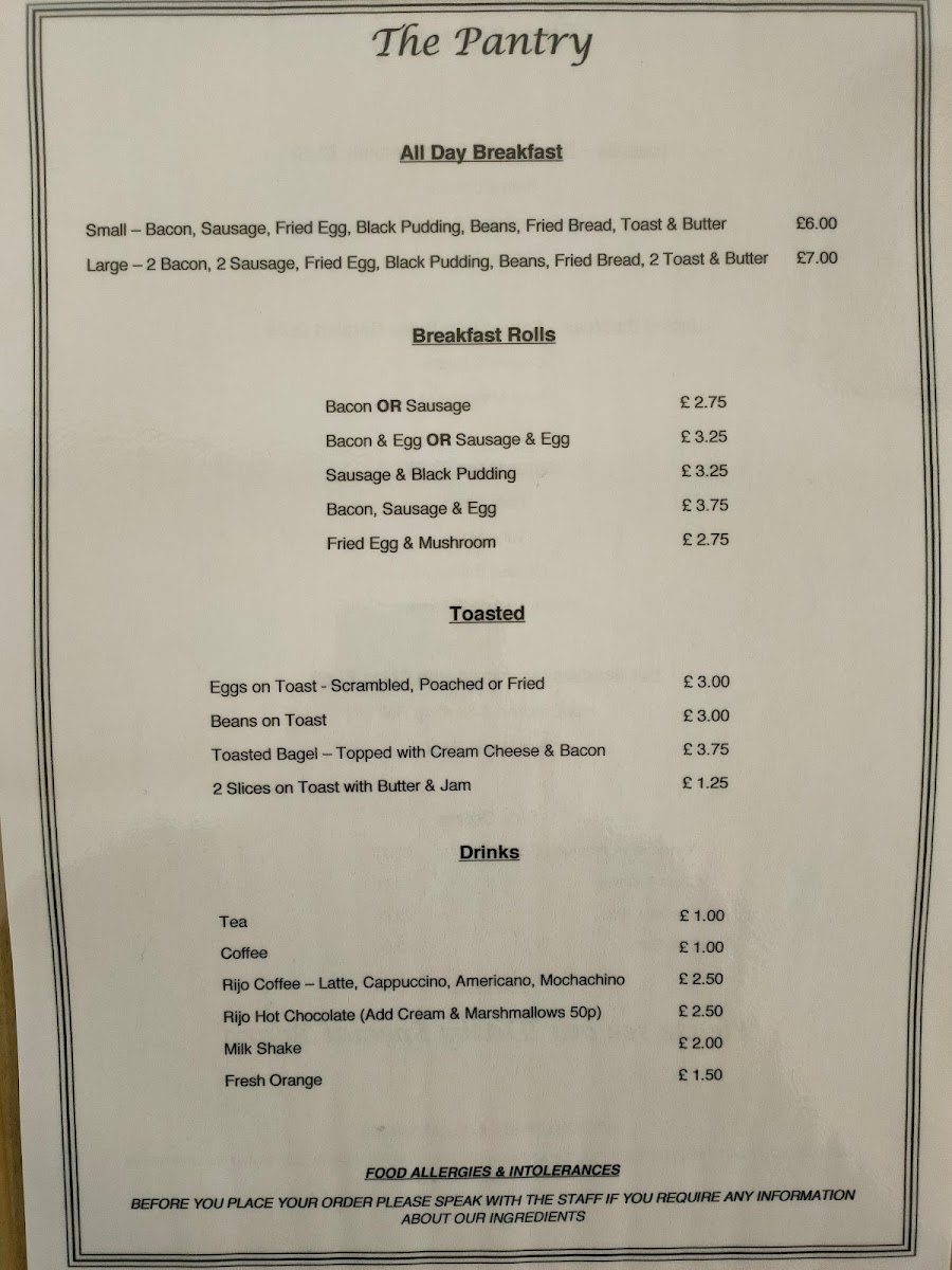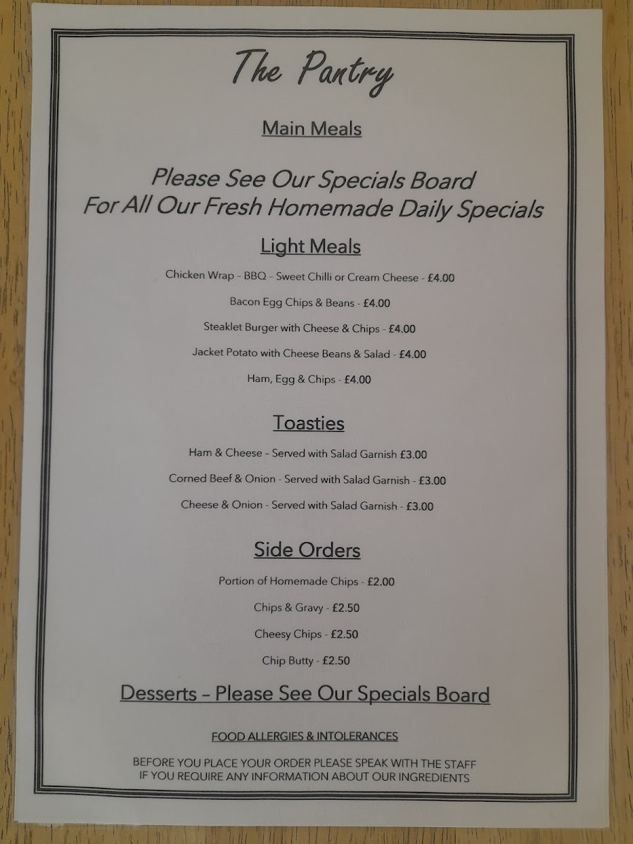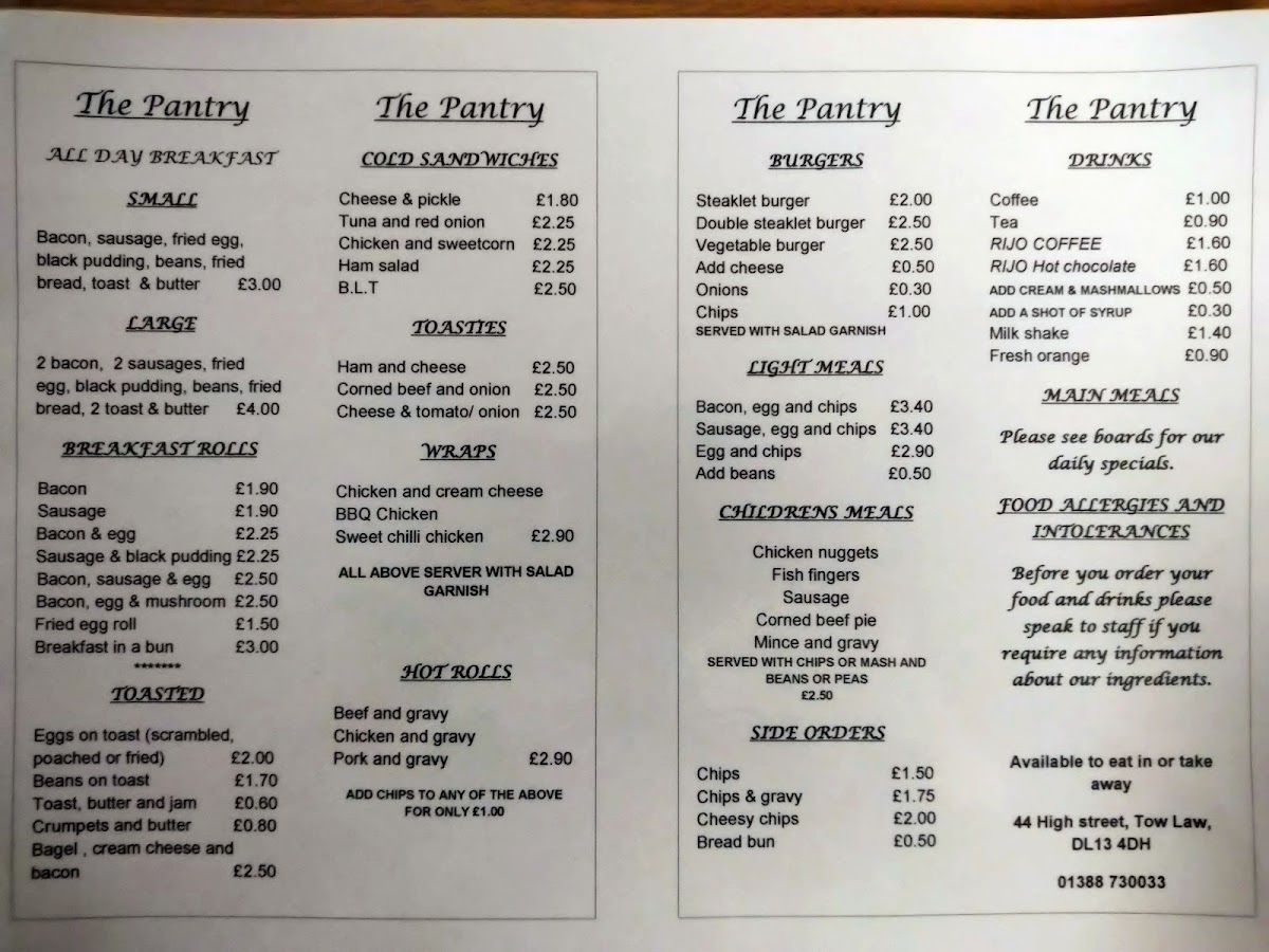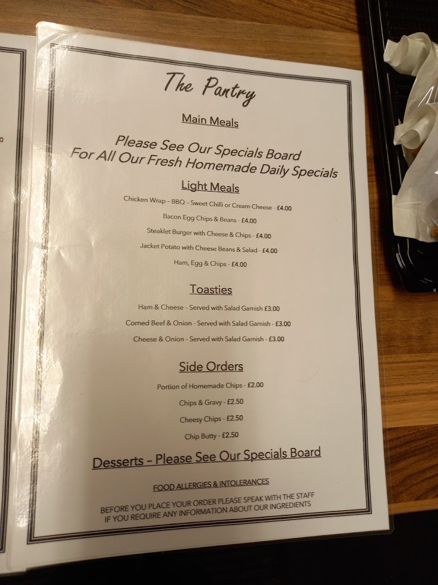 The Pantry Menu